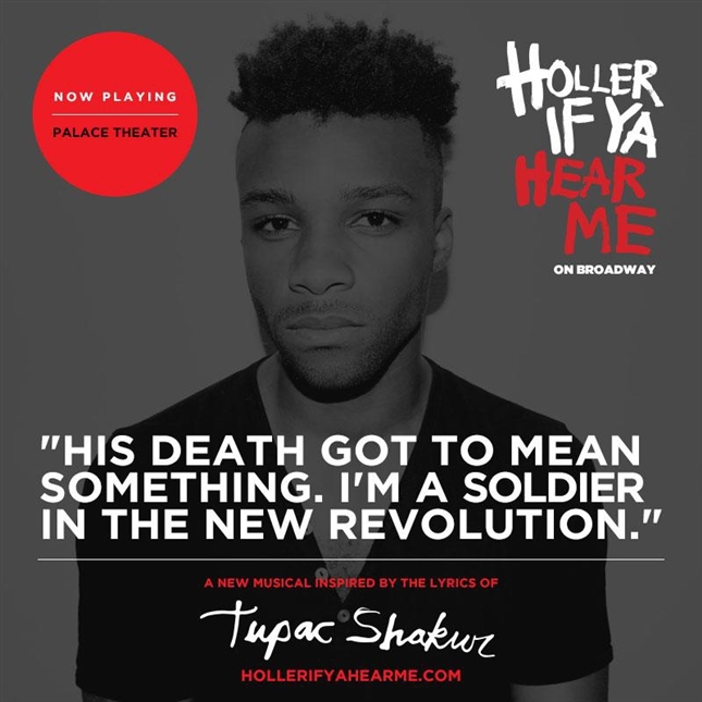 Holler If Ya Hear Me, the world inside Tupac Shakur's music and lyrics, "blazes to life in a non-biographical story about friendship, family, revenge, change and hope. Inner city lives struggle for peace against the daily challenges they face in this entertaining and original musical," according to press notes. "Through the poetry of one of the 20th century's most influential and culturally prominent voices, we are given a window into realities of the streets still relevant today."