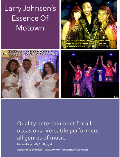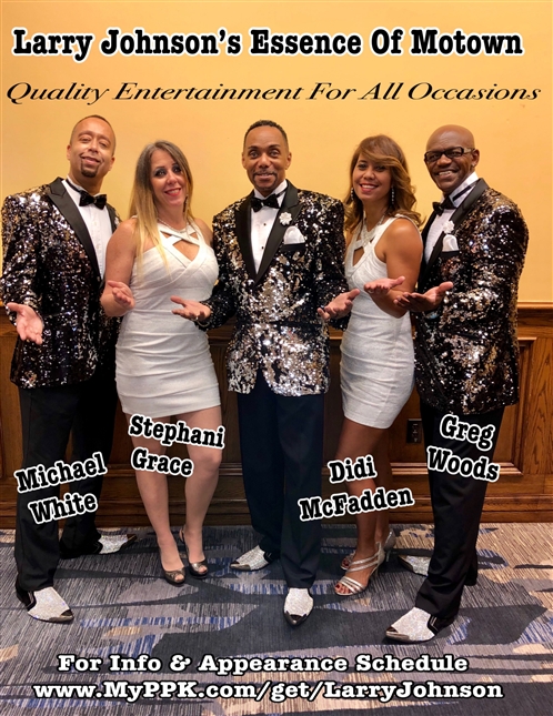 Larry Johnson's Essence Of Motown, feat. Didi McFadden, Stephani Grace, Cande Rivers, Greg Woods, & Michael White - A Tribute To Motown & More, covering all genres of music in the great American Songbook.