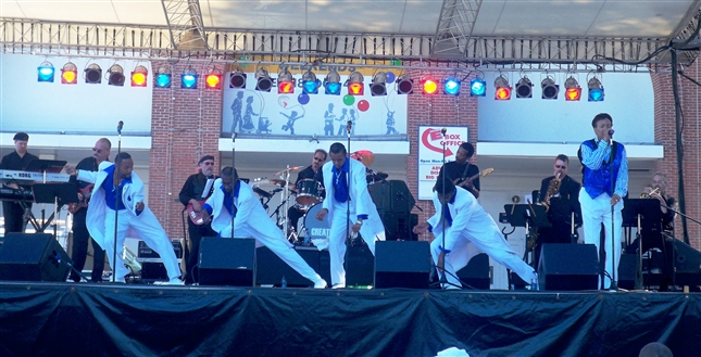 Veteran entertainer Larry Johnson, who tours as part of a Temptations review, brought the crowd to its feet with Stevie Wonder, the Temptations and Smokey Robinson classics, getting the event off to a rousing start.