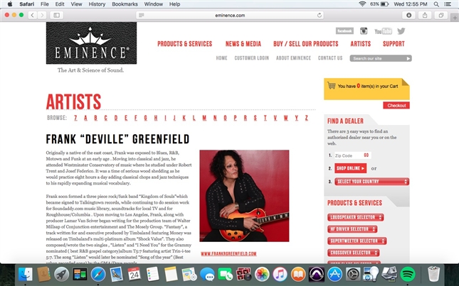With Frank Greenfield, the endorsement experience is a bit different. "Eminence speakersactually approached me and asked if I wanted to try their product, after checking me out on LinkedIn. I had been using Marshall and Boogie speakers for years. Once I tried Eminence I sold everything else. Morley was a company that I approached because I had been user for so long. Morley has been a part of my sound from the beginning. When I was starting to play guitar, I used to draw the Morley Man all the time, now I am him!"